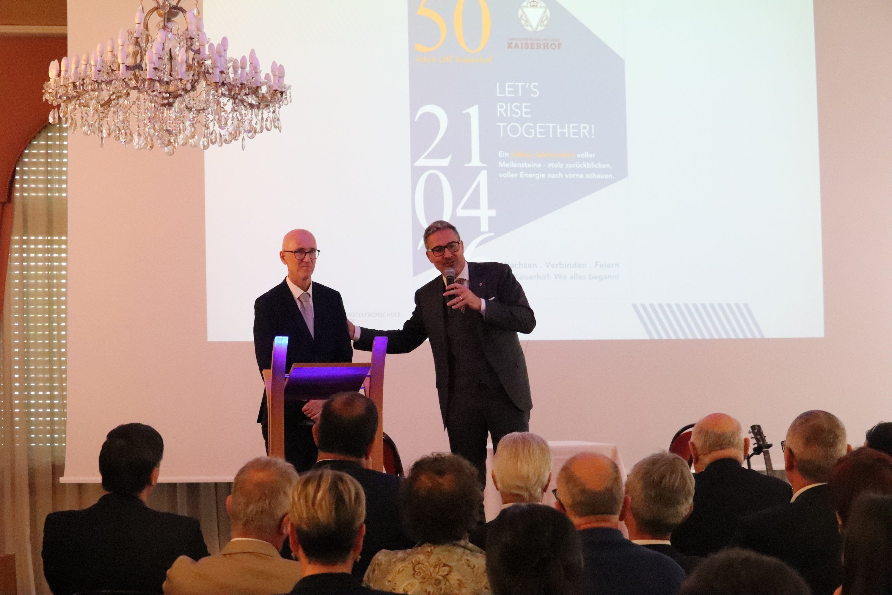 - Blick zurück: Direktorstellvertreter Andreas Erlacher bei der Feier zum 50-jährigen Bestehen der Landeshotelfachschule Kaiserhof. (Foto: LPA/maja Clara) » [IMG 1 MB]