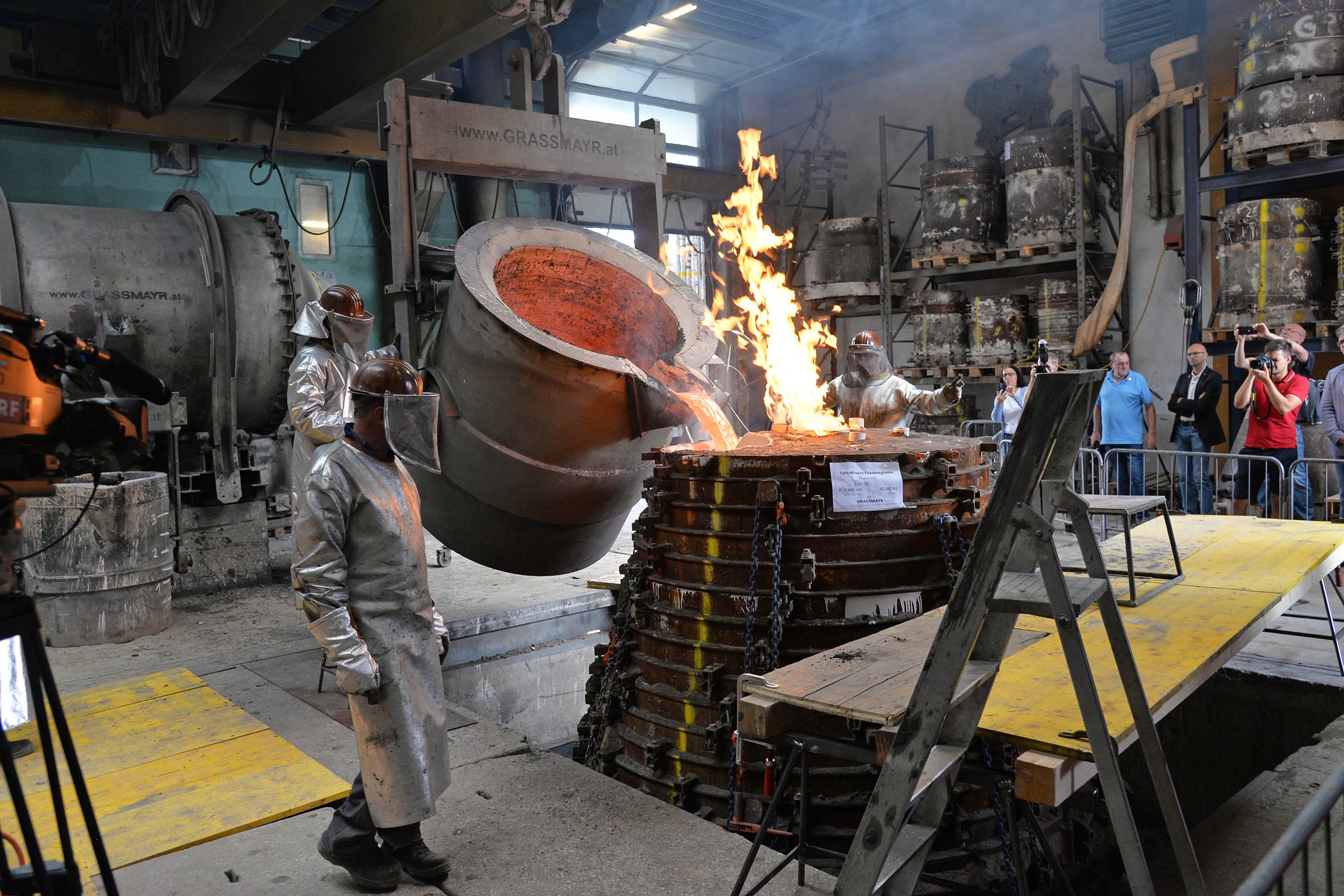 - Im Juni 2023 wurde die Friedensglocke des Alpenraums in der Glockengießerei Grassmayr in Innsbruck neu gegossen. (Foto: MG Telfs/Dietrich) » [IMG 1 MB]