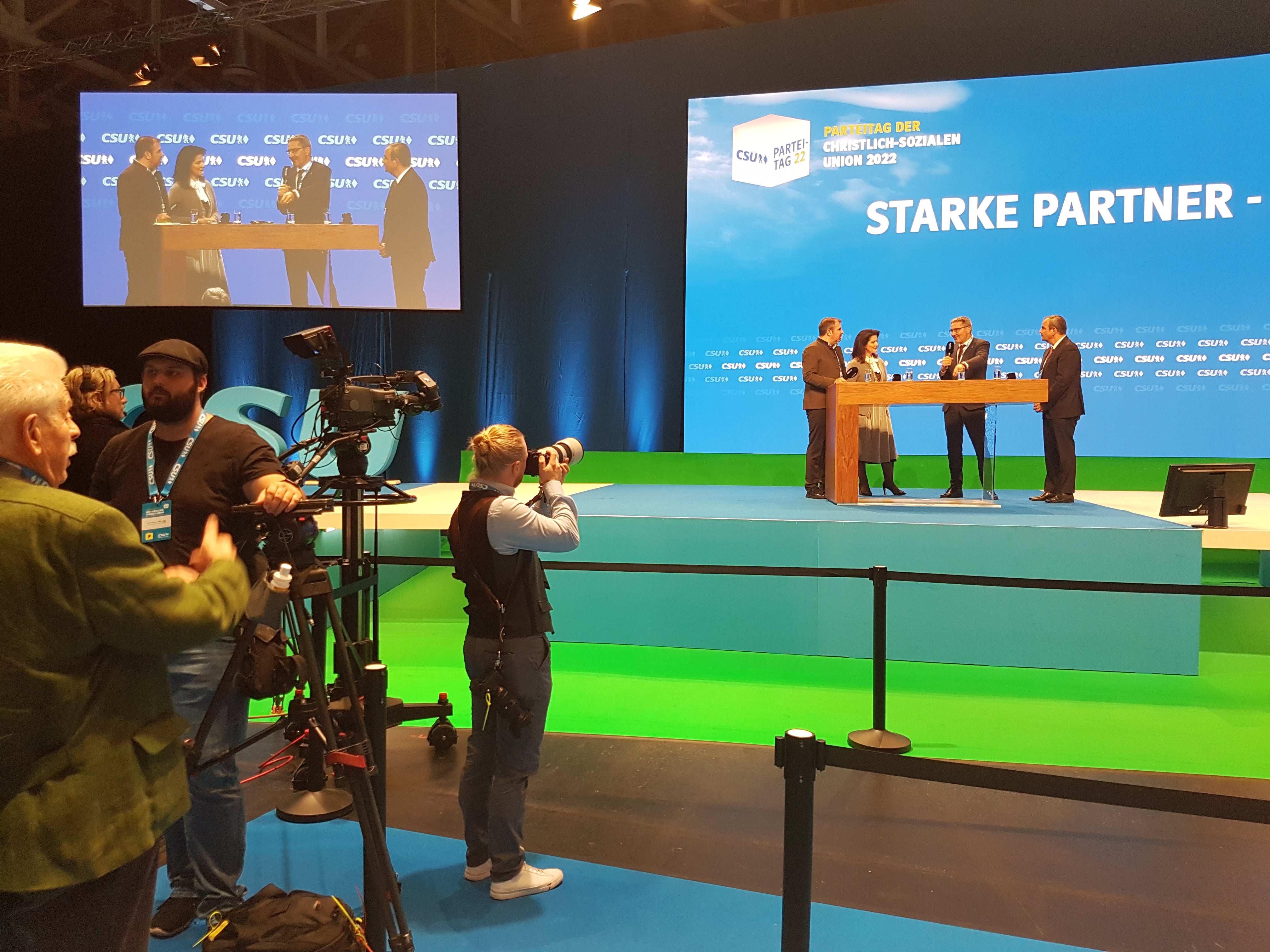 Auf Einladung des bayerischen Ministerpräsidenten Söder hat LH Kompatscher mit Vertretern aus Bayern und der Schweiz beim CSU-Parteitag die Herausforderungen der Alpenregionen thematisiert.