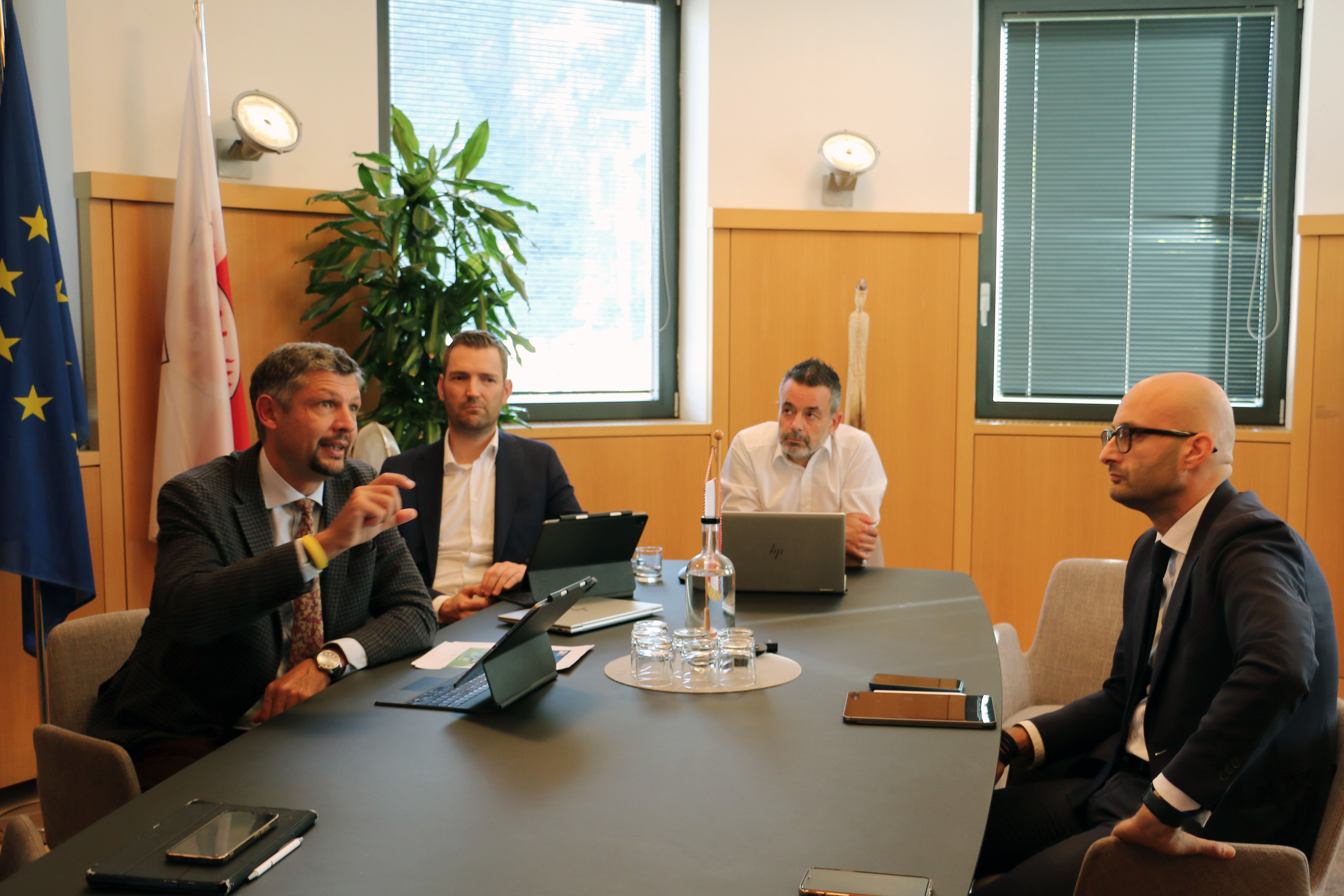 - Wollen gemeinsam für eine bessere Bahnmobilität arbeiten: Landesrat Daniel Alfreider (von links nach rechts), Mobilitätsressortdirektor Martin Vallazza, Sta-Direktor Joachim Dejaco und RFI-Geschäftsführer Gianpiero Strisciuglio (Foto: LPA/Ingo Dejaco) » [IMG 2 MB]