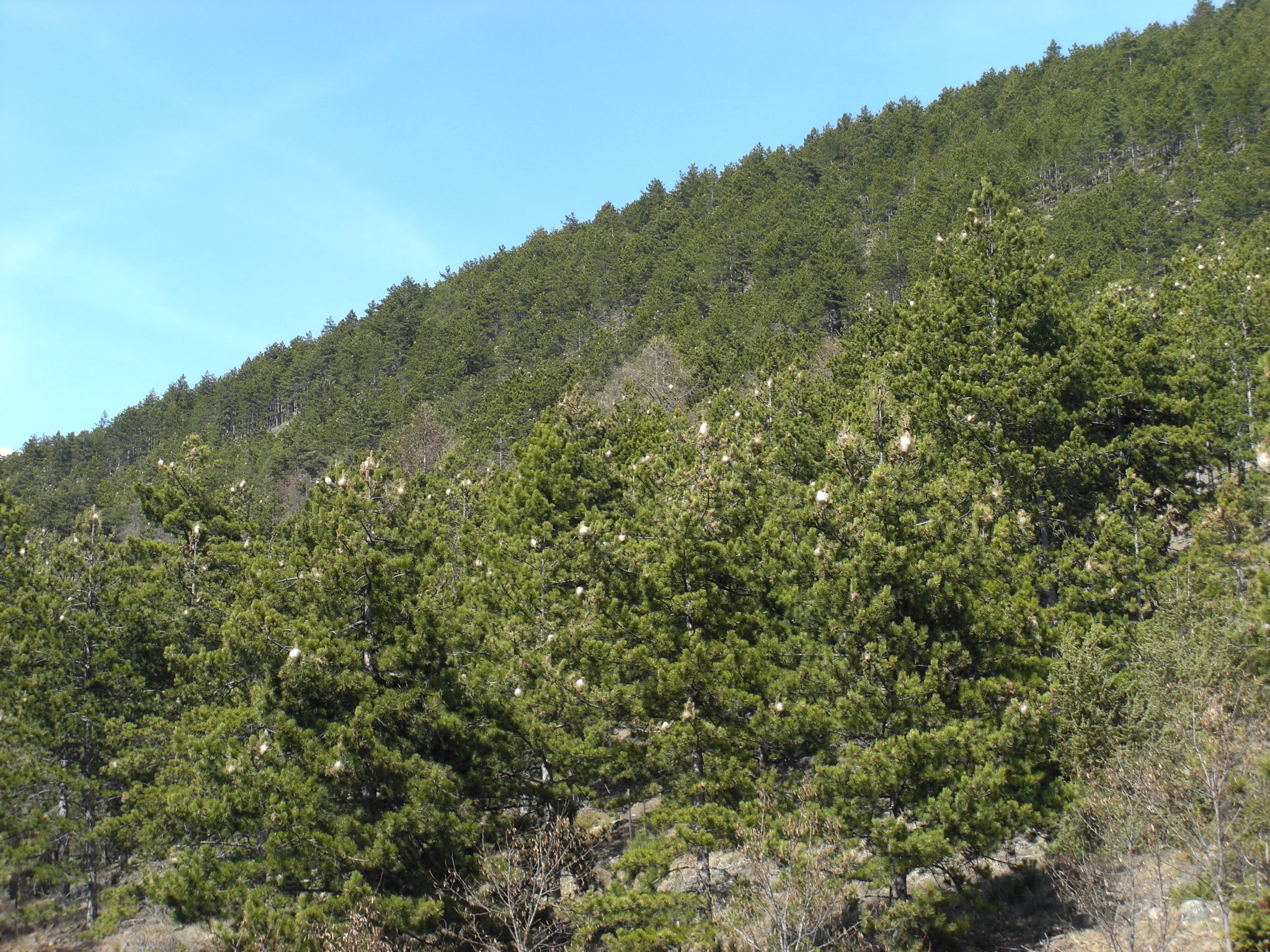 - Raupengespinst des Kiefernprozessionsspinners im Vinschgau (Foto: LPA/Forstinspektorat Schlanders) » [IMG 1 MB]