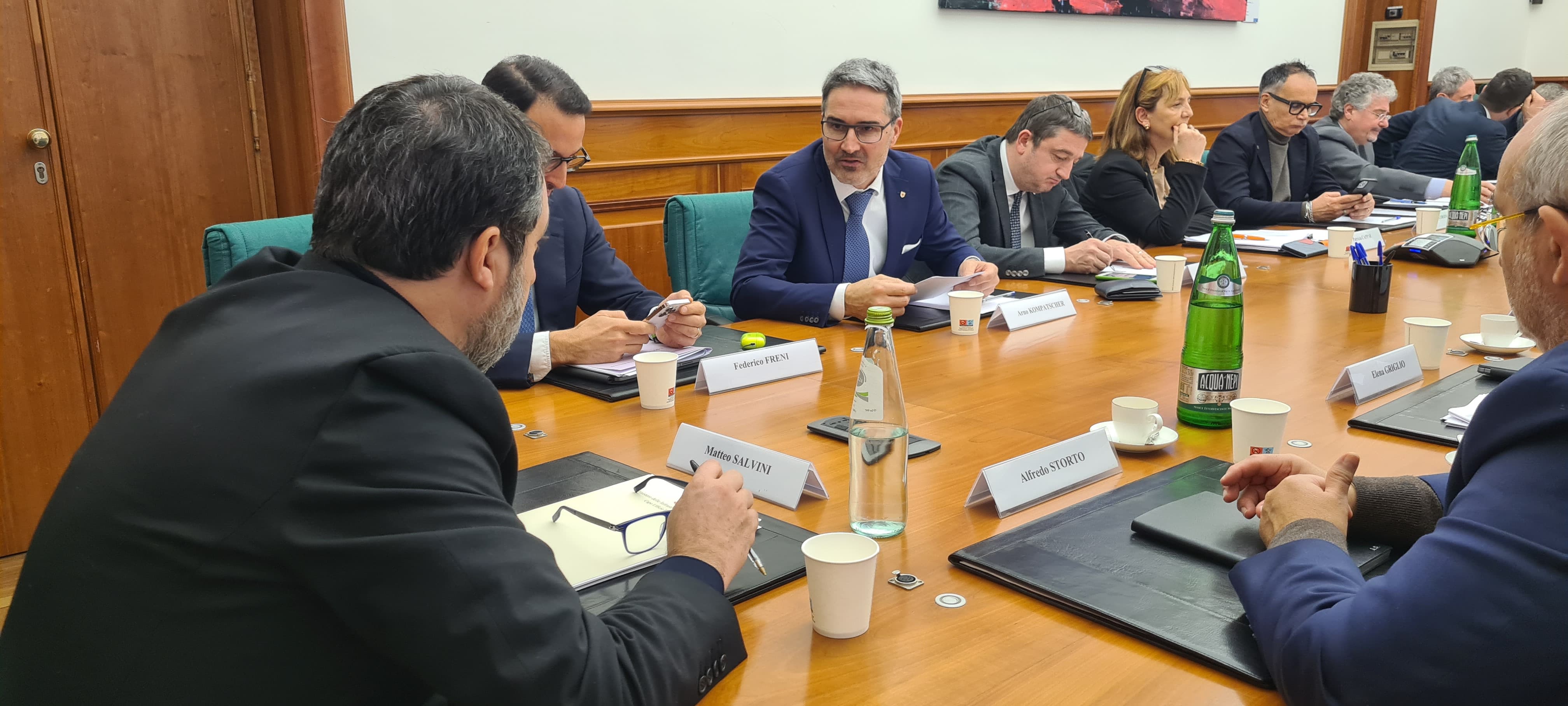 - Bei dem Gespräch mit dem Minister für Infrastruktur und nachhaltige Mobilität ging es zum einen um die Klärung noch offener Fragen im Hinblick auf die Konzessionsvergabe, zum anderen um die Ausschreibung zur Vergabe der neuen Konzession für die Führung der A22. (Foto: Davide Cordua) » [IMG 505 kB]
