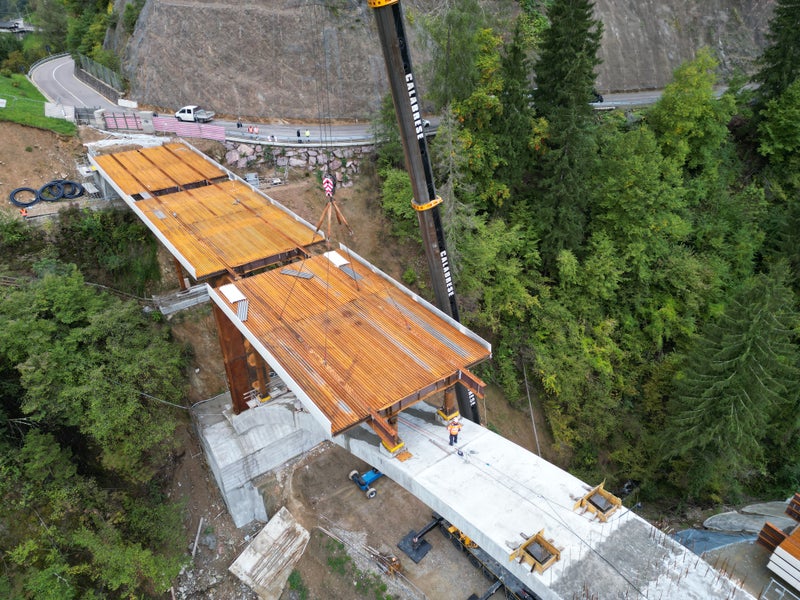 Die Montage der Stahlelemente erfolgt mit höchster Präzision und mit viel Augenmerk auf Sicherheit. "Durch die Vorarbeit am Boden konnten wir die Stahlteile sicher verschweißen und verschrauben jetzt die Verbindungen direkt am Ort des Einbaus", erklärt der Verfahrensverantwortliche Augustin Hueber. Das Trapezblech des Verbundtragwerks unter der Fahrbahn sorge zusätzlich für Sicherheit während der Verlegung der Bewehrungsstahleinlagen und des Betoniervorgangs, so Hueber.