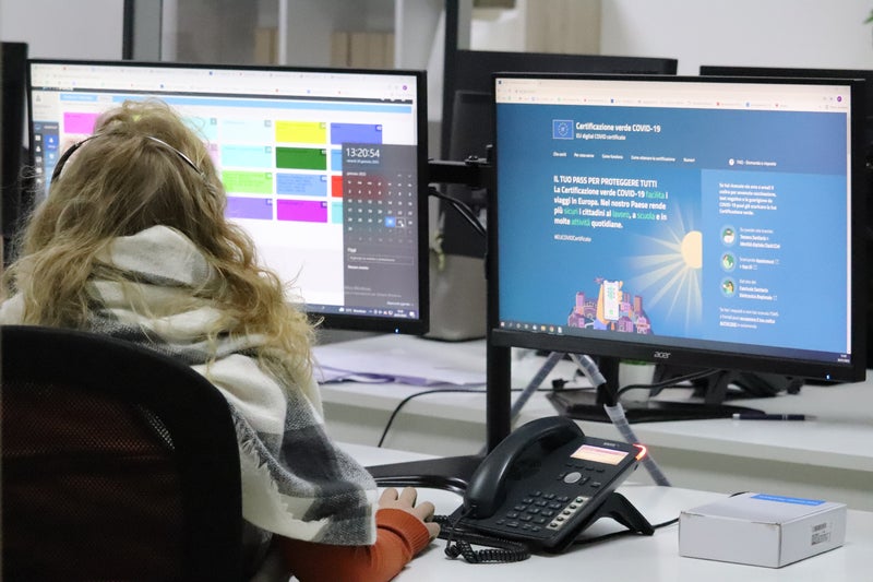 - Eine Flut von Anfragen zum Greenpass geht täglich beim Bürgertelefon des Bevölkerungsschutzes (im Bild) ein. (Foto: LPA/Maja Clara) » [IMG 1 MB]