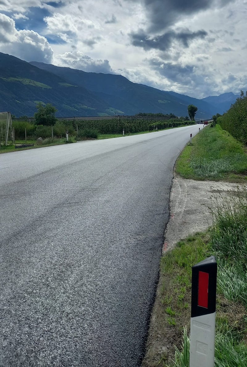 Auf der viel befahrenen Vinschger Staatsstraße in Rabland konnten heute (16. September) die Asphaltierungsarbeiten für eine bessere Befahrbarkeit der Straße abgeschlossen werden. Die Arbeiten wurden Großteils nachts abgewickelt, um den Verkehr nicht zu beeinträchtigen.