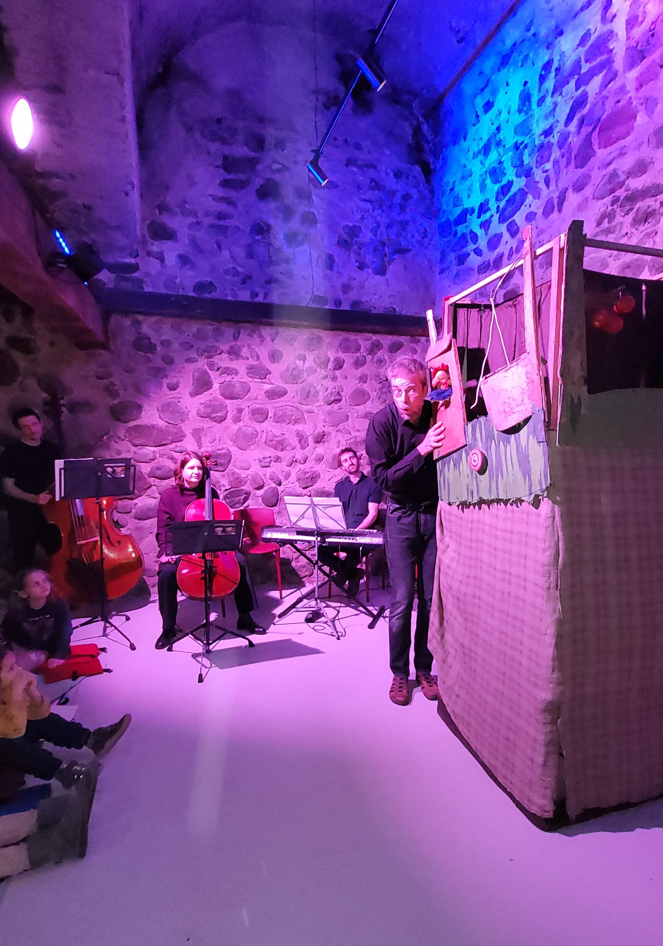 - Puppenspieler Nagelschmied sowie die Musiker Hofstätter, Mattle und Mairer entführten das Publikum in die Märchenwelt von Frau Holle. (Foto: Euregio/Armin Gluderer) » [IMG 1 MB]