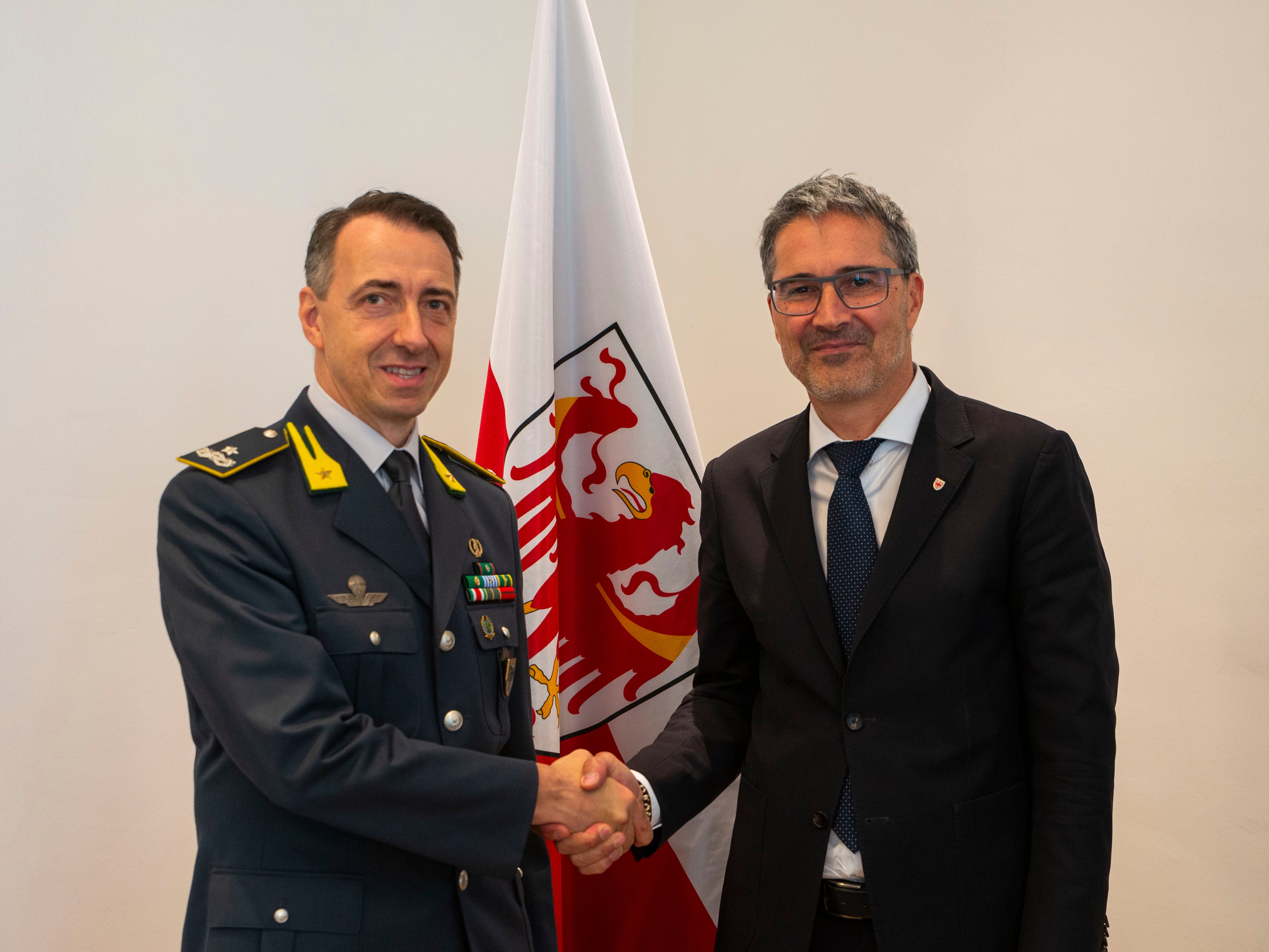 - Landeshauptmann Arno Kompatscher (r.) im Gespräch mit General Gabriele Procucci, der in Kürze das Regionalkommando der Finanzwache Trentino-Südtirol übernehmen wird. (Foto: LPA/Fabio Brucculeri) » [IMG 1 MB]