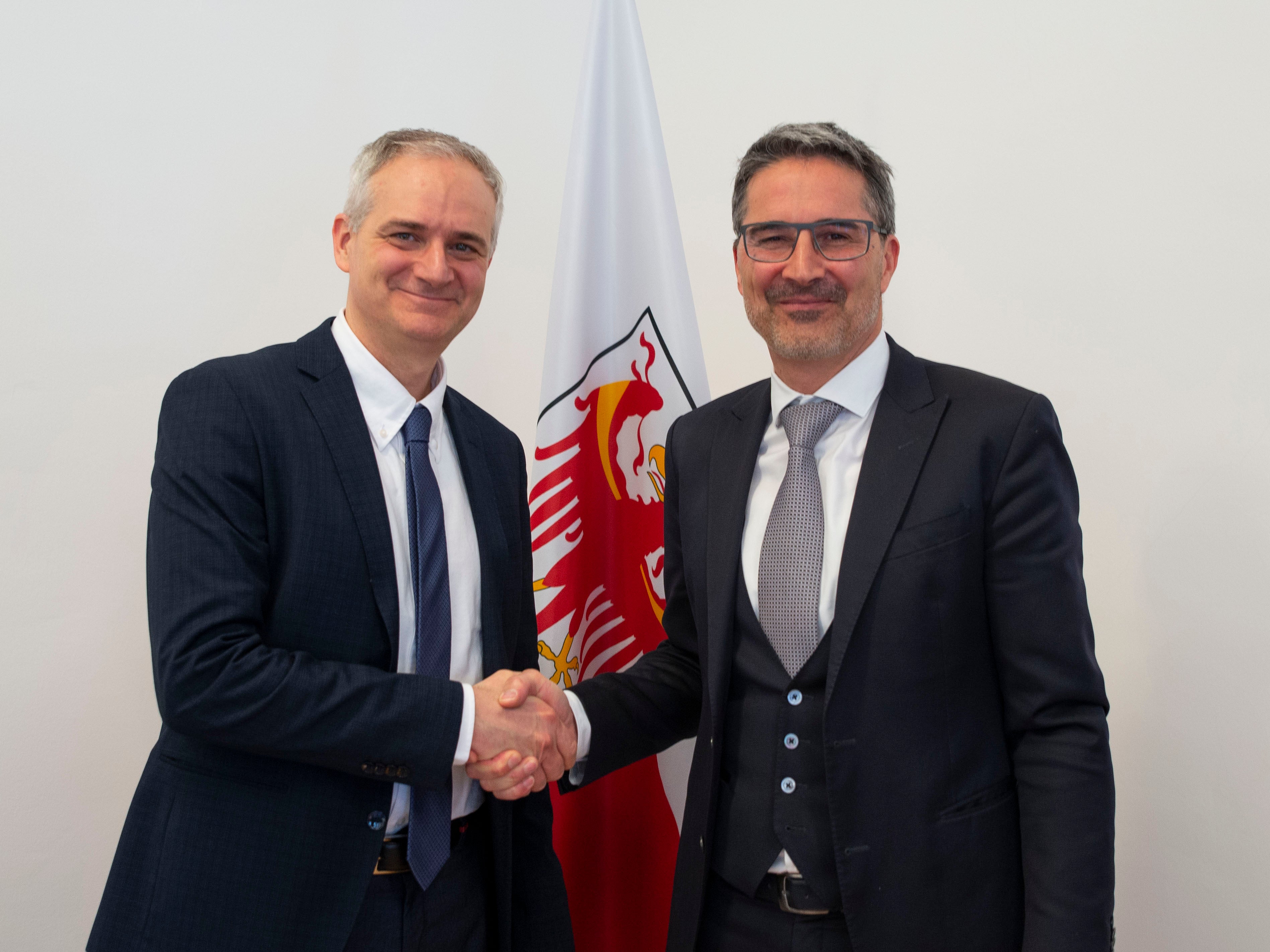 - Dem neuen Direktor am Mazziniplatz, dem 53-jährigen Paolo Mazzucato, wünschte Landeshauptmann Kompatscher alles Gute für seine Arbeit. (Foto: LPA/Fabio Brucculeri) » [IMG 840 kB]