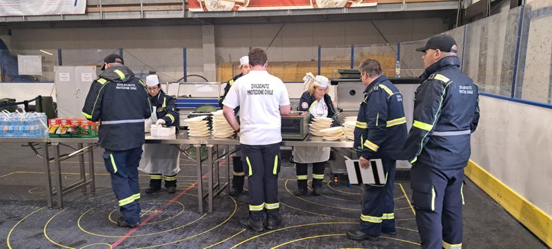 - Die Teilnehmer und Teilnehmerinnen an der Großübung wurden vom Zivilschutz des Weißen Kreuzes auch mit Essen und Trinken versorgt (Foto: LPA) » [IMG 279 kB]