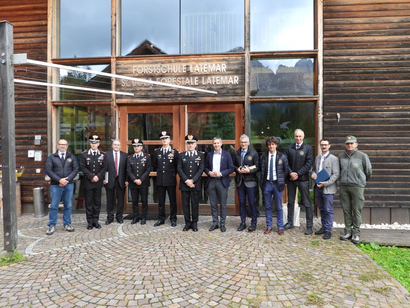 - Gruppenbild vor der Landesforstschule Latemar (von links): Marco Pietrogiovanna (Amt für Forstplanung), Carabinieri-Landeskommandant Oberst Raffaele Rivola, Albert Wurzer (Agentur Landesdomäne), Brigadegeneral Francesco Pennacchini, Brigadegeneral Gianpiero Andreatta, Armeekorpsgeneral Andrea Rispoli, Landesrat Luis Walcher, Forstdienst-Abteilungsdirektor Günther Unterthiner, sein Stellvertreter Emilio Dellagiacoma, Paul Zipperle (Amt für Forstverwaltung, Schuldirektor Florian Reichegger. (Foto: LPA/Abteilung Forstdienst) » [IMG 7 MB]