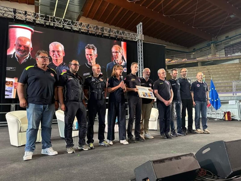 - In Faenza in der Provinz Ravenna wurde ein Jahr nach dem verheerenden Hochwasser eine Dankesfeier für alle Hilfskräfte organisiert. Für Südtirol nahm der Direktor der Agentur für Bevölkerungsschutz Klaus Unterweger (2.v.re.) stellvertretend den Dank entgegen. (Foto: LPA) » [IMG 141 kB]