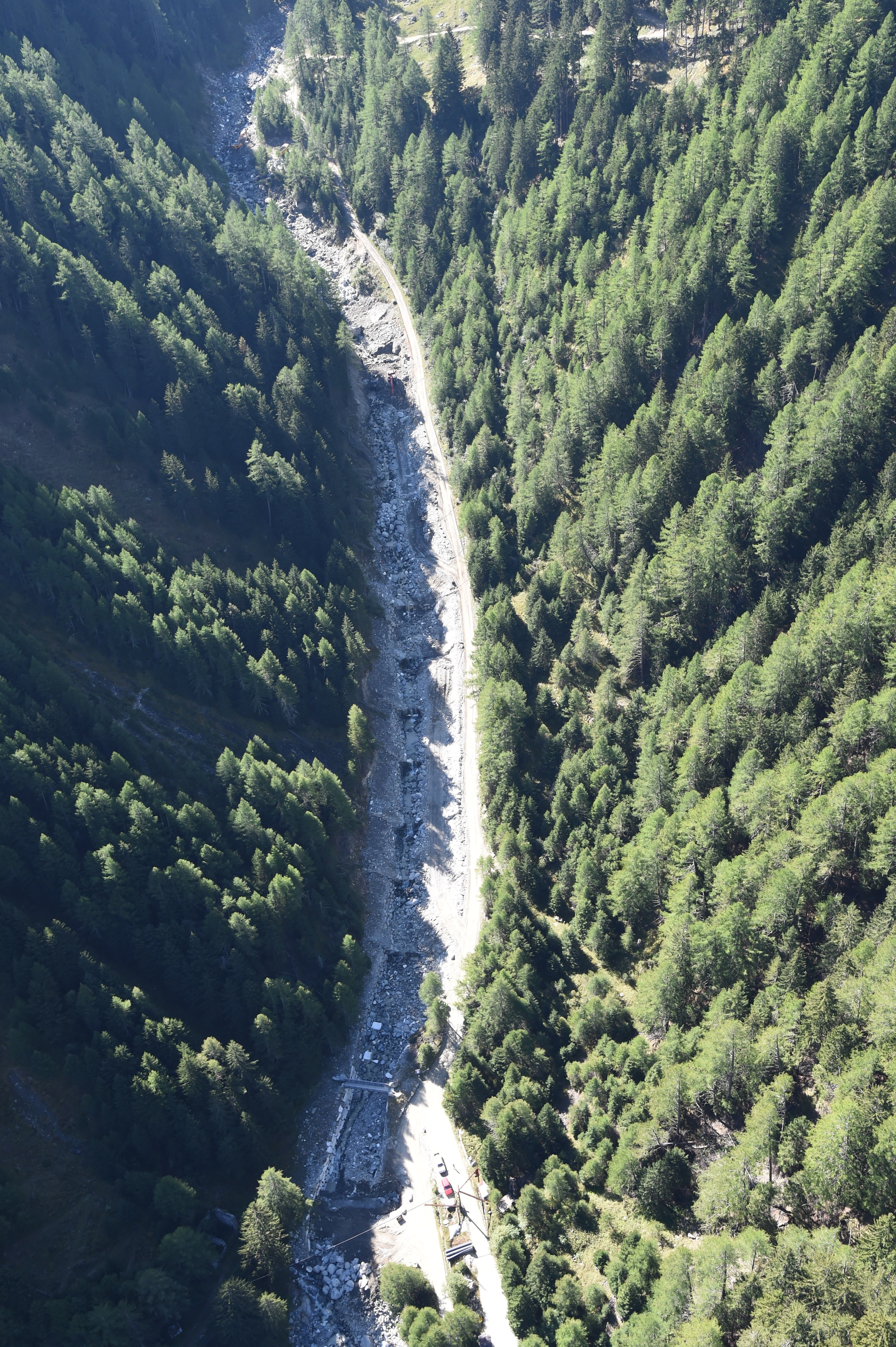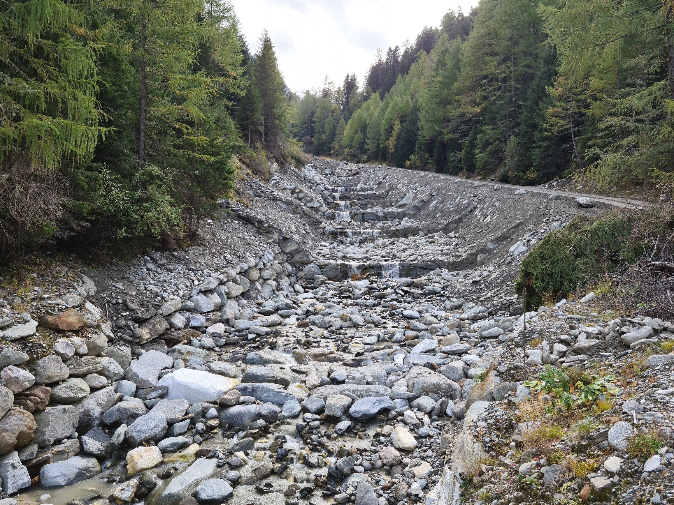Das Landesamt für Wildbachverbauung West verstärkt mit einer Sperrenstaffelung und Uferschutzbauten im Mittellauf des Laaserbachs in der Gemeinde Laas im Vinschgau den Hochwasserschutz.