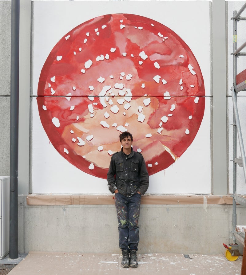 - Matteo Picelli, der in der Öffentlichkeit mit dem Künstlernamen Egeon auftritt, gestaltet am Mobilitätszentrum Brixen 19 Fliegenpilze, die für eine gute Vernetzung stehen. (Foto: LPA/Ressort Mobilität) » [IMG 2 MB]