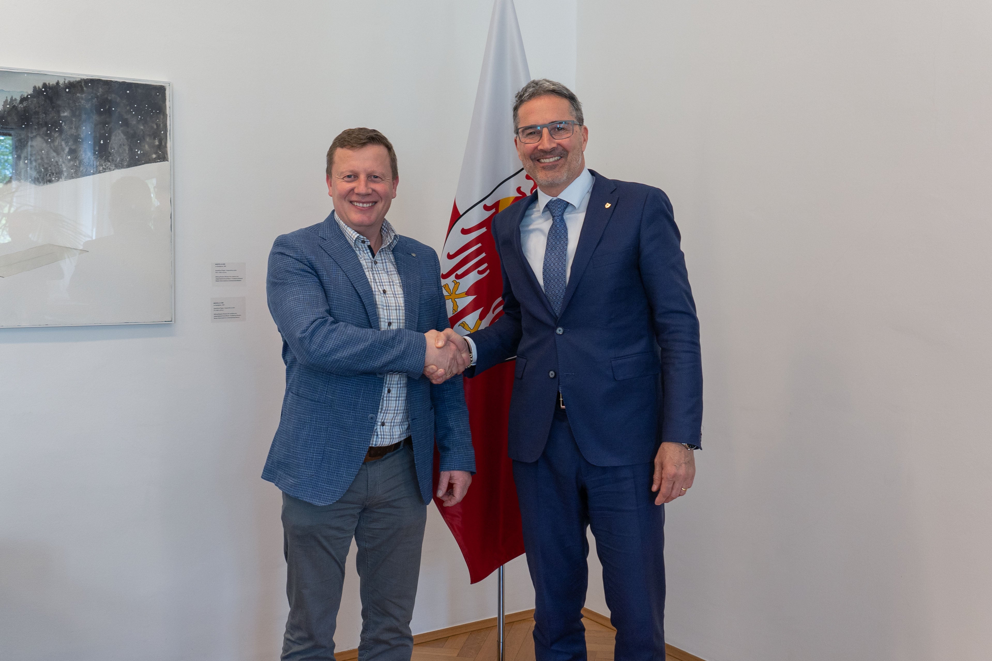 - Der neu gewählte Obmann des Südtiroler Bauernbunds, Daniel Gasser, hat Landeshauptmann Arno Kompatscher einen Besuch abgestattet. (Foto: LPA/Greta Stuefer) » [IMG 1 MB]