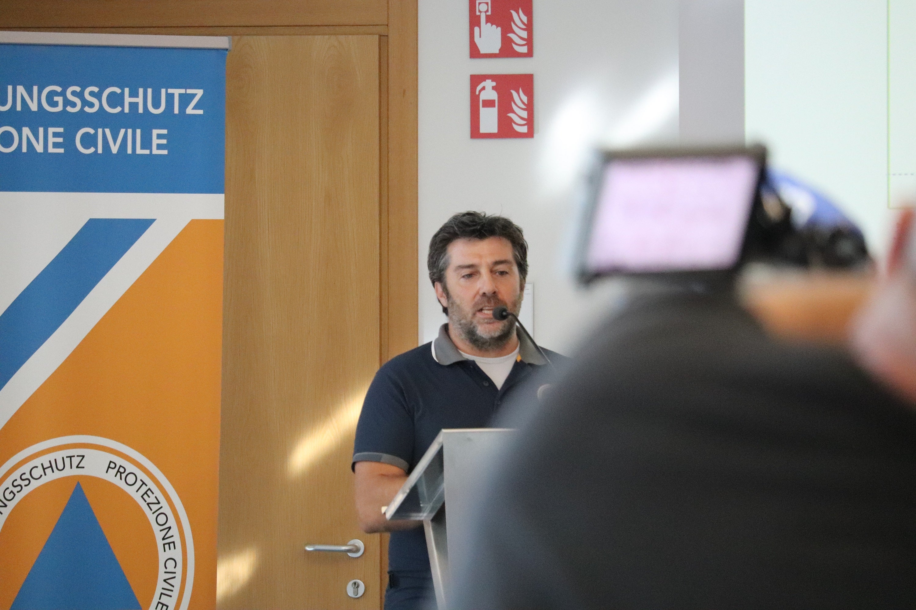 - Der Mitarbeiter der Agentur für Bevölkerungsschutz Matteo Vischi bei der Darlegung einiger Details des Landeszivilschutzplans (Foto: LPA/Maja Clara) » [IMG 1 MB]