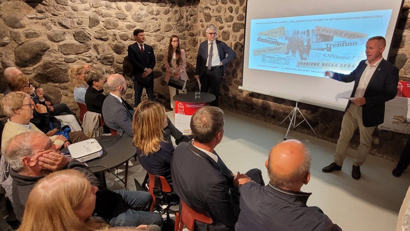 - Mit dem "Marsch auf Bozen" vor hundert Jahren war gestern Abend ein bedeutendes zeithistorisches Ereignis der Südtiroler Geschichte Thema des Euregio-Kulturdonnerstags. (Foto: Euregio/Armin Gluderer) » [IMG 2 MB]
