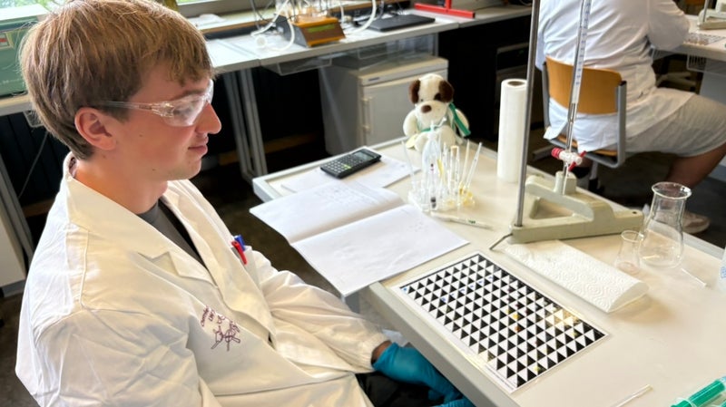 Nach dem theoretischen Teil folgte der praktische Abschnitt im Labor, in dem die Teilnehmenden ihr Können im Bereich der Ionenreaktionen und Farbumschläge unter Beweis stellten. Verschiedene Stoffe mussten durch gezielte Analysen identifiziert werden: Ist Vanillin enthalten oder doch Apfelsäure? Wer hier genau beobachtete, sauber arbeitete und logisch kombinierte, hatte eindeutig den richtigen Riecher und konnte im Wettbewerb punkten.