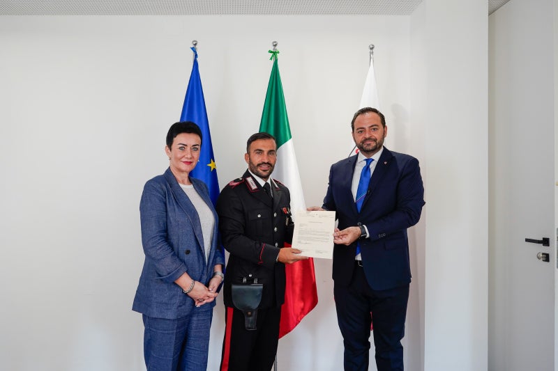 Der Unteroffizier Emiliano Corrente hatte am 20. April während seiner Freizeit in Meran einen Räuber aufgehalten, der eine Kassiererin in einem Supermarkt mit einer Flasche bedroht hatte. Corrente sorgte bis zum Eintreffen der Ordnungskräfte für die Sicherheit aller Anwesenden. Er vereitelte damit den Raubüberfall. Die Ordnungskräfte konnten den Täter festnehmen.