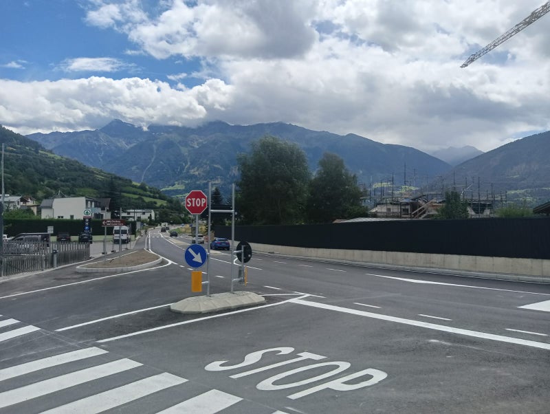 Sicherer und übersichtlicher präsentiert sich nun der Kreuzungsbereich bei der Südeinfahrt von Schluderns. (Foto: LPA/Ressort für Infrastrukturen und Mobilität)