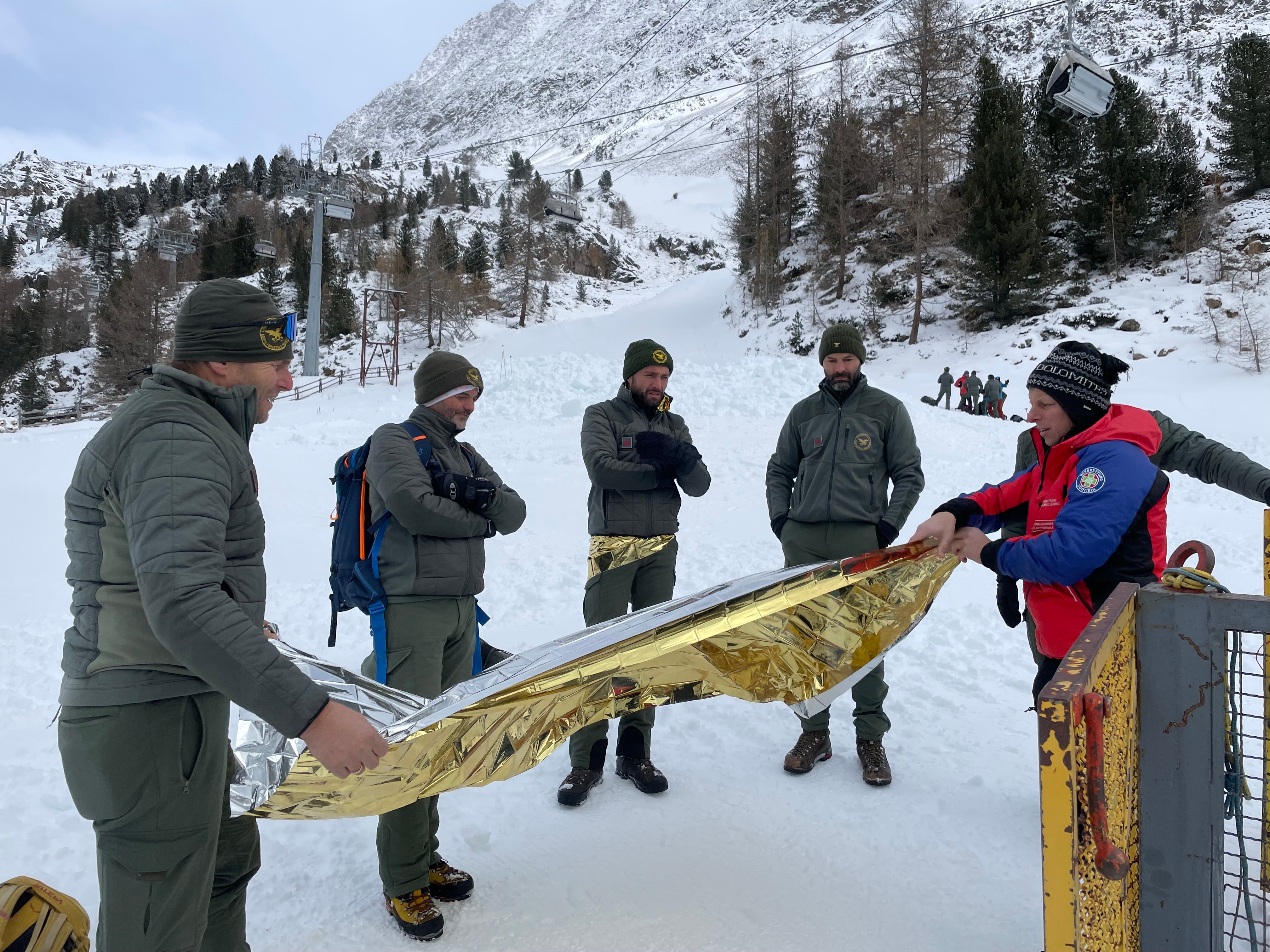 JOCHTAL/VALS/RATSCHINGS/SCHNALS (LPA). Wie setze ich ein Lawinenverschüttetensuchgerät sachgerecht ein? Wie lege ich eine Notfallbandage an? Wie weise ich einen Helikopter ein? An drei Orten in Südtirol haben die Mitarbeiterinnen und Mitarbeiter des Lawinenwarndienstes im Landesamt für Meteorologie und Lawinenwarnung in der Agentur für Bevölkerungsschutz jeweils einen Tag lang wichtige Grundlagen in Sicherheitskursen für Försterinnen und Förster vermittelt. Die 100 Teilnehmenden wurden in den vergangenen Wochen in Zusammenarbeit mit der Bergrettung im Alpenverein Südtirols AVS und dem Verband der Südtiroler Berg- und Skiführer in Theorie und Praxis unterwiesen. Der Kurs schloss jeweils mit einer Großübung bei einem simulierten Lawinennotfall.