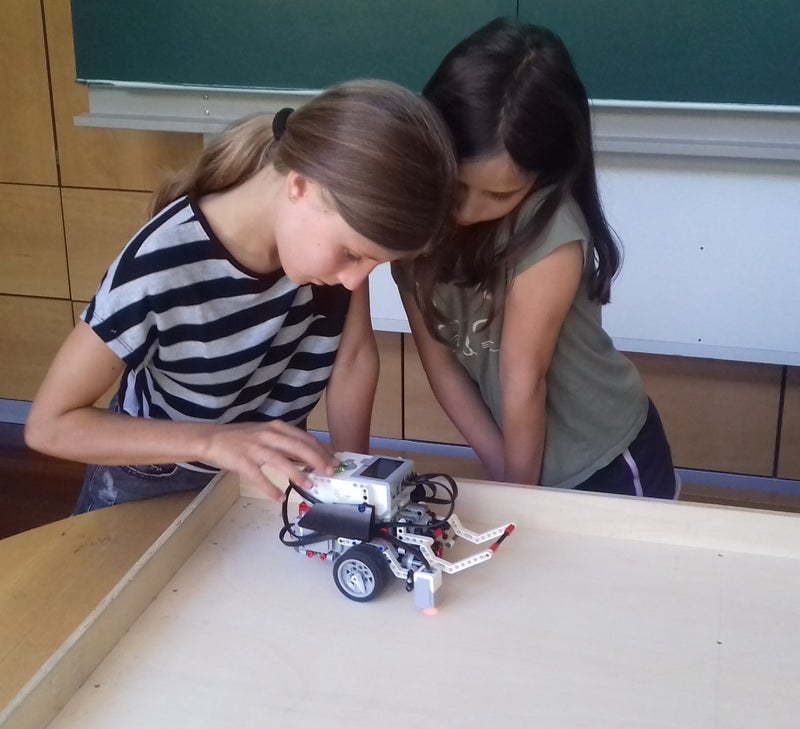 - Romy Köllemann (l.) und Samira Falk Rufin mit ihrem Lego-Roboter (Foto: LPA/Martin Niederkofler) » [IMG 488 kB]