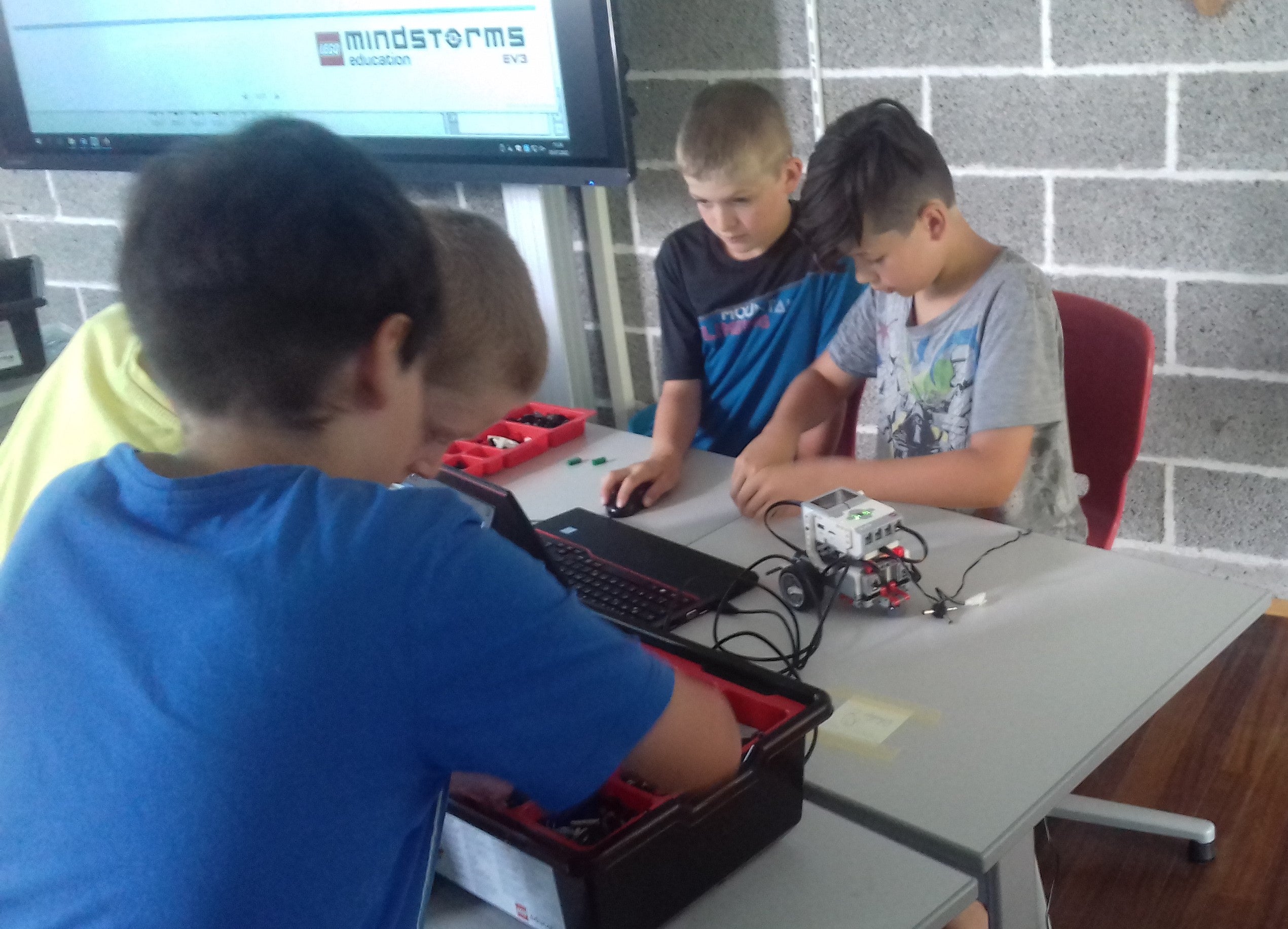 Im Workshop "Lego-Roboter bauen und programmieren" arbeiteten die Kinder mit Hilfe des Tablets und einer einfachen Programmiersprache an selbst gebauten Lego-Modellen. Die Roboter waren danach imstande, sich selbstständig zu bewegen, Farben oder Hindernisse zu erkennen und auf einem eigenen Spielfeld ihre Geschicklichkeit zu zeigen. Die Workshopleiter Philipp Egger und Martin Niederkofler standen den Schülerinnen und Schülern bei ihrer Arbeit mit Rat und Tat zur Seite.