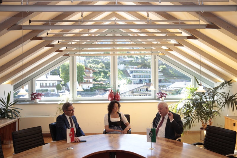 - Nach dem Arbeitsgespräch im Rathaus von Schenna: (v.l.) LH Kompatscher, BMin Pichler, LH Schützenhöfer (Foto: LPA/Tiberio Sorvillo) » [IMG 2 MB]