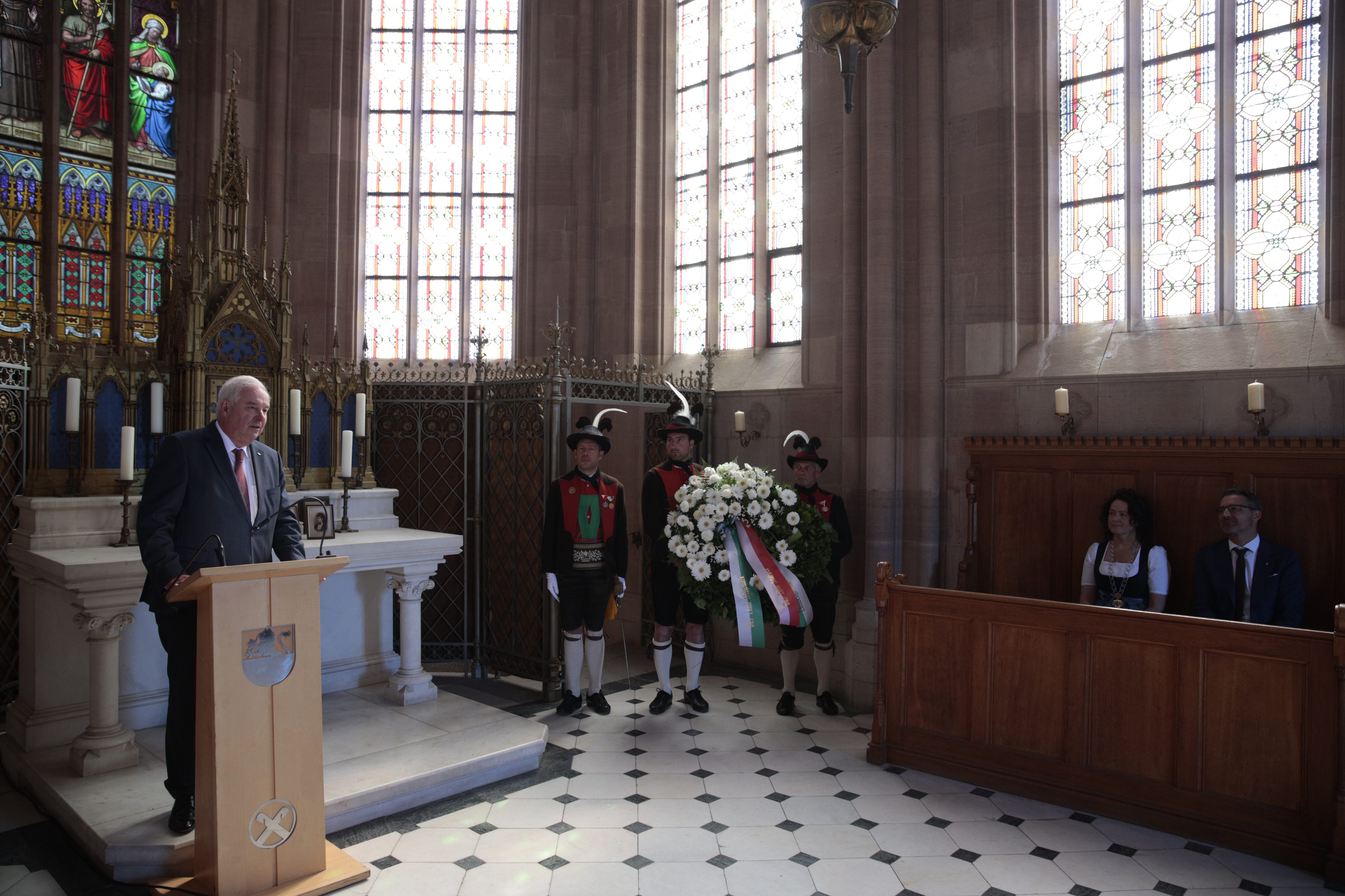 - Im Mausoleum von Erzherzog Johann gedachten die Landeshauptleute Schützenhöfer (l.) und Kompatscher des "Vordenkers, Pioniers und Reformers, der in der Steiermark und Tirol bis heute nachhaltige Spuren hinterlassen hat". (Foto: LPA/Tiberio Sorvillo) » [IMG 2 MB]