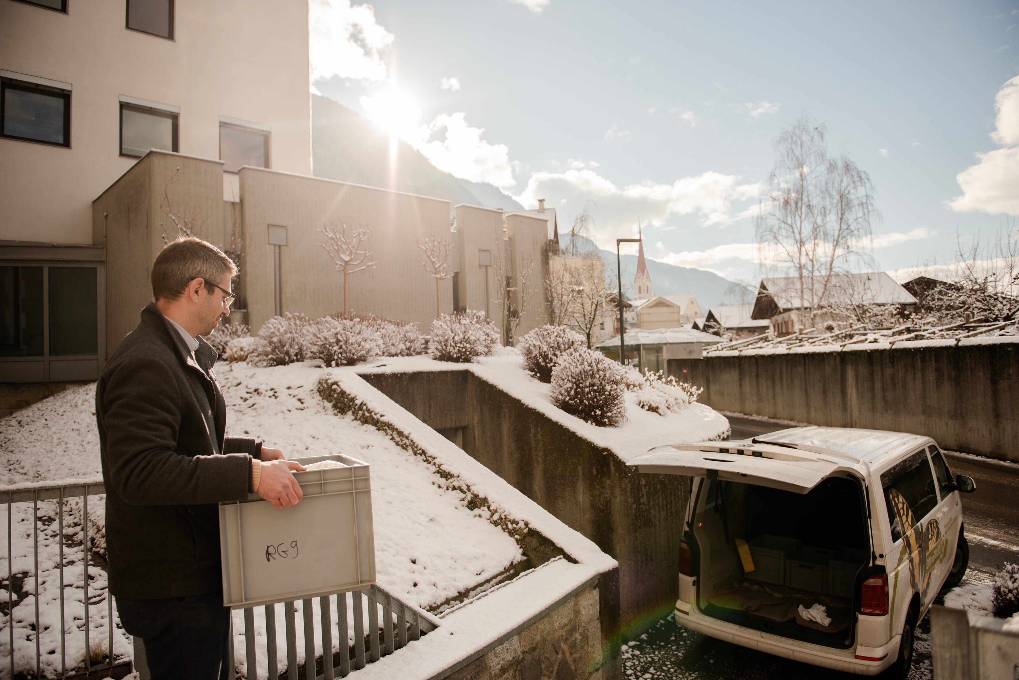 - Naturmuseumsdirektor David Gruber half beim Aufladen in der Forststation St. Leonhard. (Foto: LPA/Claudia Corrent) » [IMG 4 MB]