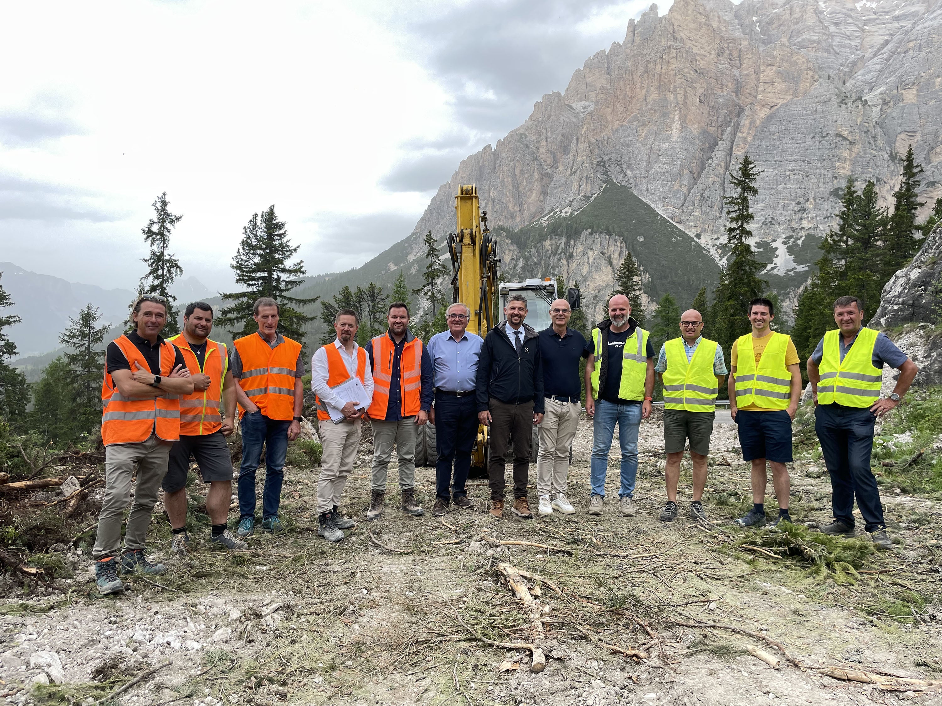 Bis 2026 wird ein rund zwei Kilometer langer Straßenabschnitt zwischen Armentarola (Gemeinde Abtei/St. Kassian) und dem Valparola-Pass und somit nahe der Südtiroler Grenze zur Provinz Belluno gesichert. Auf diesem Teilstück der Landesstraße hatte es in den vergangenen Jahren immer wieder Erdrutsche und Lawinen gegeben. Seit einigen Tagen wird gearbeitet. Die Arbeiten werden in zwei Losen abgewickelt. Mobilitäts- und Infrastrukturenlandesrat Daniel Alfreider war am 20. Juni auf der Baustelle. "Ziel ist es, mehr Sicherheit für Fahrzeuglenkende, Radler und Radlerinnen auf dieser länderüberschreitenden Verbindung zu schaffen und die Erreichbarkeit des Gadertals insgesamt verbessern", sagt Alfreider.