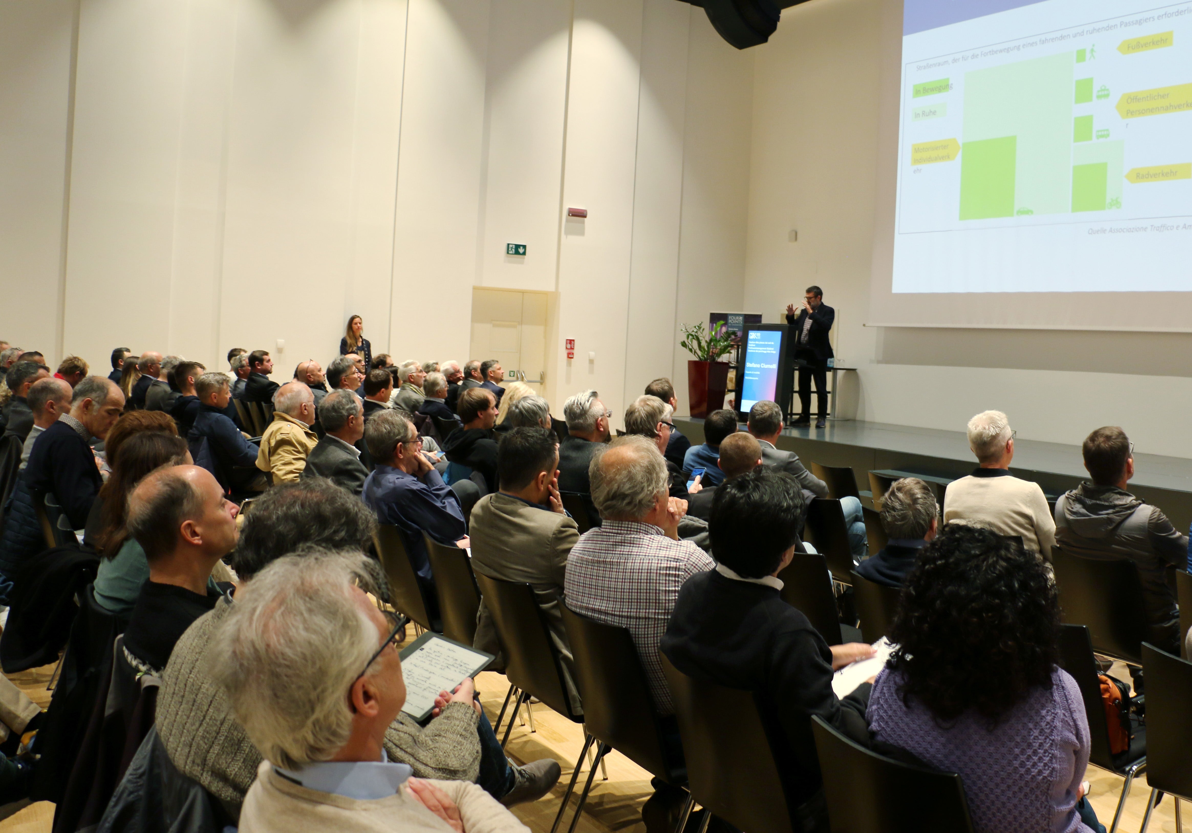 - Mobilitätsexperte Stefano Ciurnelli stelle bei der gut besuchten Tagung zum Parkraummanagment verschiedene technologische und strategische Ansätze vor. (Foto: LPA/Ingo Dejaco) » [IMG 2 MB]