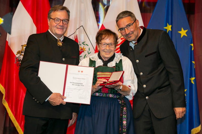 - Als eine von 29 Südtirolerinnen und Südtirolern erhielt Paula Oberkofler March aus Truden wegen ihres Einsatzes für die Dorfgemeinschaft die Verdienstmedaille des Landes Tirol. (Foto: Land Tirol/DieFotografen) » [IMG 1 MB]