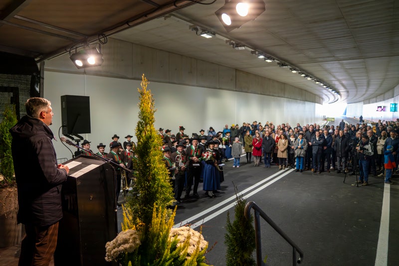 - Die Umfahrung sei das Ergebnis von viel Arbeit und dem Einsatz neuer Geräte und innovativer Methoden, sagte Mobilitätslandesrat Daniel Alfreider bei der Eröffnung der Umfahrung und dankte allen am Bau Beteiligten. (Foto: LPA/Daniel von Johnston) » [IMG 2 MB]