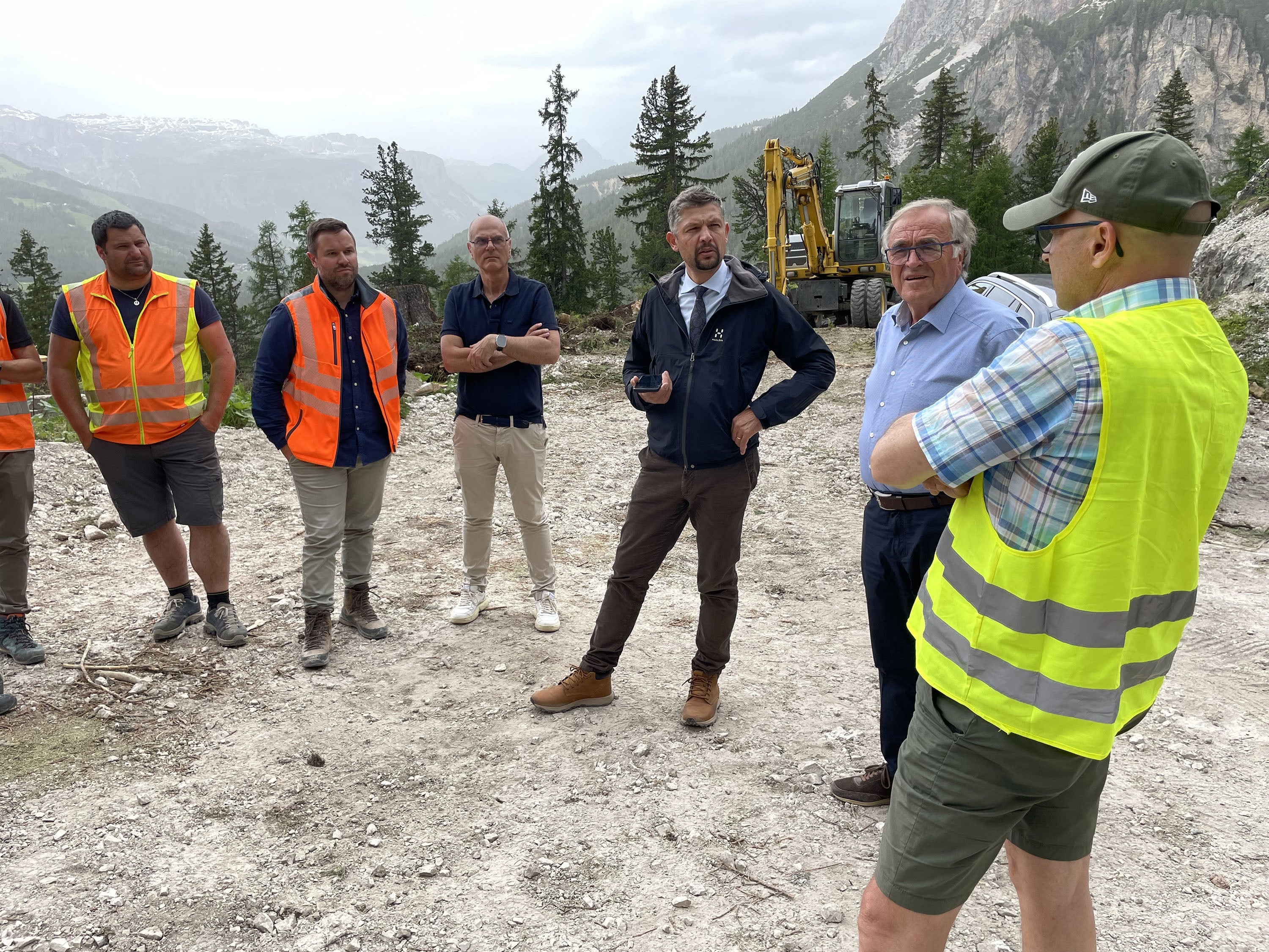 - Wie die Sicherungsarbeiten an der Landesstraße auf den Valparola-Pass abgewickelt werden, hat Mobilitäts- und Infrastrukturenlandesrat Daniel Alfreider mit den Technikern und Arbeitern im Sommer auf der Baustelle bei Armentarola besprochen. (Foto: LPA/Gnews) » [IMG 1 MB]
