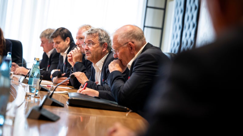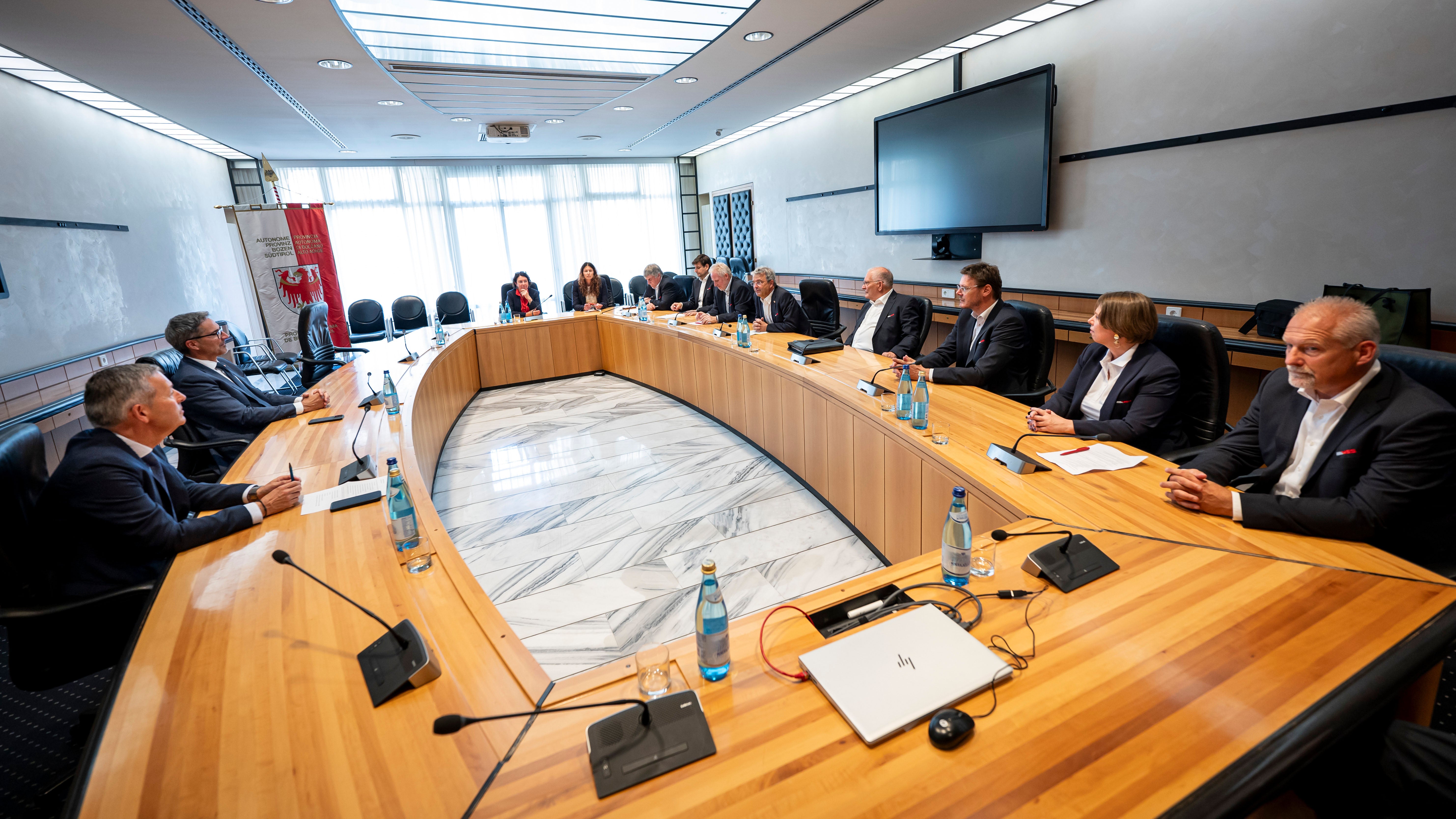 Der neue VSS-Vorstand bespricht mit Landeshauptmann Kompatscher und Sportlandesrat Brunner den erneuerten Landessportbeirat und die Zusammenarbeit mit den Schulen.