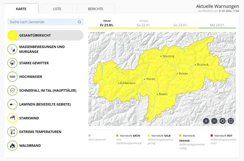 Warnlagebericht für die kommenden drei Tage: warnungen.provinz.bz.it