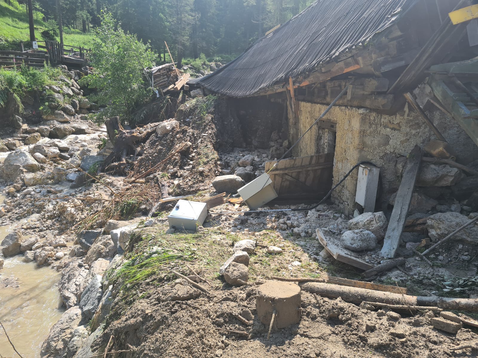"Im Wengener Bach führt die Wildbachverbauung mit Vorarbeiter Tobias Obwegs an mehreren Punkten kleinere Eingriffe aus", berichtet Techniker Thomas Gamper vom Landesamt für Wildbach- und Lawinenverbauung Ost: Der Wengener Bach in der Gemeinde Wengen im Gadertal war nach Starkregen vorgestern (17. Juli) Abend an mehreren Stellen über die Ufer getreten. Die größten Schäden entstanden bei einer privaten Sägemühle, wo das Bachbett verlegt und Uferschutzmauern beschädigt wurden. Bachabwärts wurde eine Gemeindestraße überspült. An mehreren Stellen hat sich Geschiebematerial abgelagert, auch im Mündungsbereich. Die Wildbachverbauung räumt nun das Bachbett wieder aus, um damit den Hochwasserschutz wieder zu erhöhen.