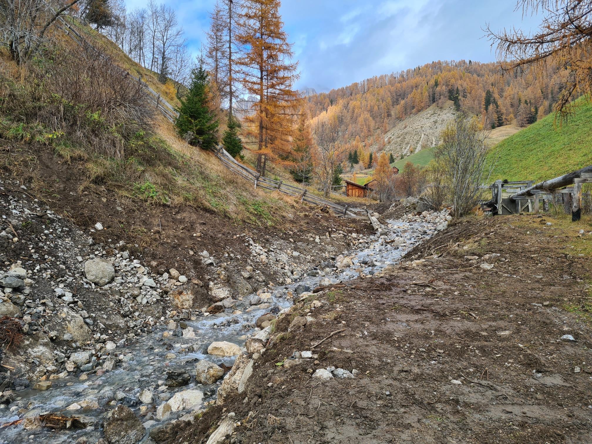 - Im Pfarrbach in Enneberg (im Bild) hat die Gemeinde nach den Aufräumarbeiten der Wildbachverbauung die Kanalisierung wieder instandgesetzt. (Foto: LPA/Landesamt für Wildbach- und Lawinenverbauung Ost) » [IMG 841 kB]
