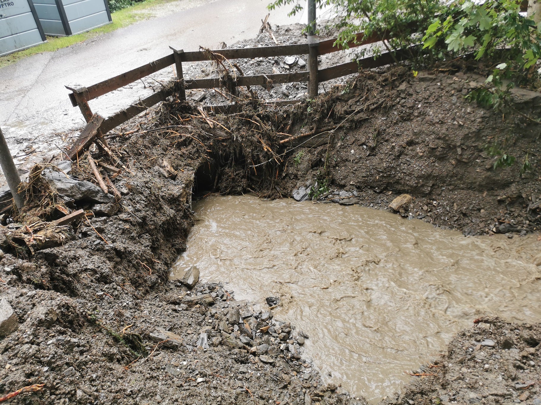 - Vorher: Dieses Rohr mit einem Durchmesser von 0,8 Metern ist bei den Unwettern 2024 schnell verklaust und leitete Teile des Trenserbachs aus dem Bachbett. (Foto: LPA/Landesamt für Wildbach- und Lawinenverbauung Nord/Thomas Hasler) » [IMG 1 MB]