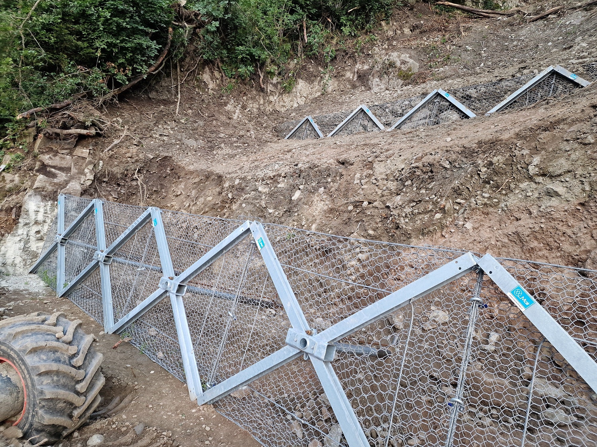 - Innovative Schutzmaßnahme: Mit diesen Metallschirmen hat die Wildbachverbauung das Bachbett des Schiedmanngrabens befestigt. (Foto: LPA/Landesamt für Wildbach- und Lawinenverbauung Nord in der Agentur für Bevölkerungsschutz) » [IMG 2 MB]