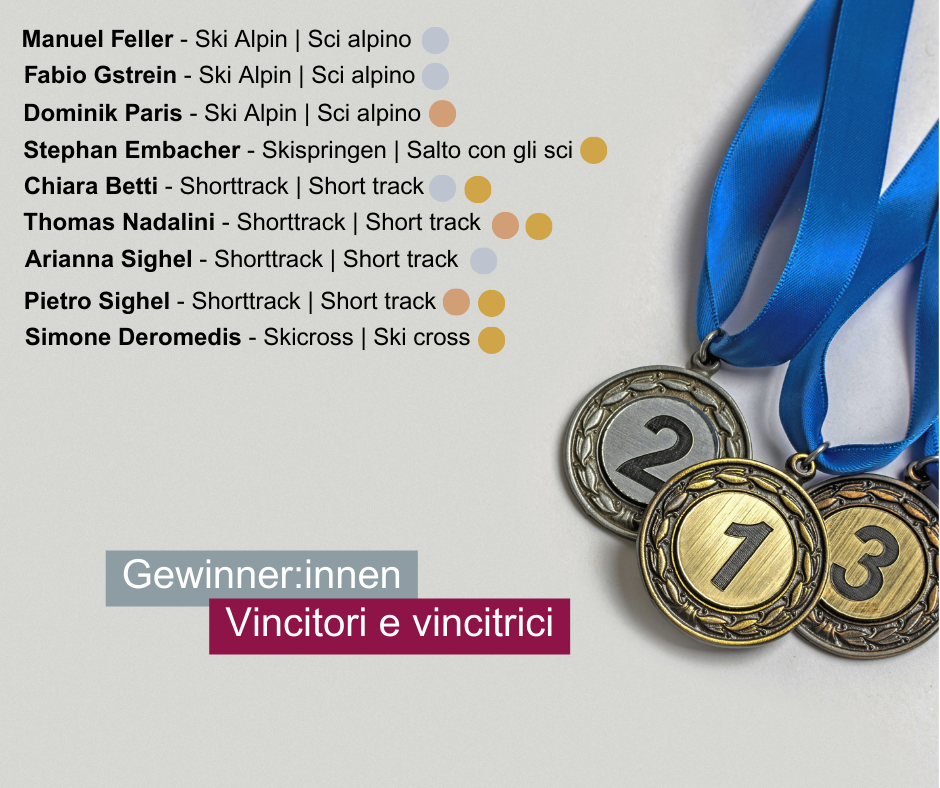 BOZEN/INNSBRUCK/TRIENT (LPA). Die Athletinnen und Athleten aus der Euregio Tirol-Südtirol-Trentino haben sich bei den XXV. Olympischen Winterspielen hervorragend geschlagen: In 21 Bewerben haben 29 Sportlerinnen und Sportler aus Tirol, Südtirol und dem Trentino insgesamt 12 Gold-, 14 Silber- und 17 Bronzemedaillen gesammelt.