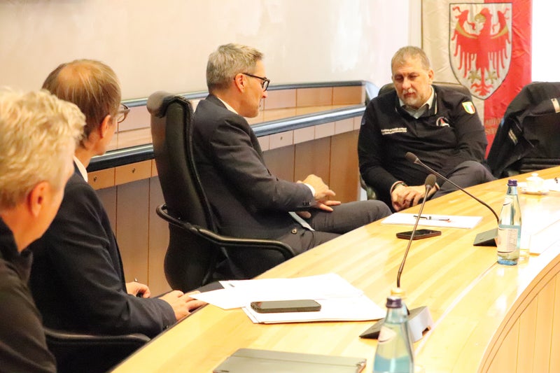Direktor des nationalen Zivilschutzes Fabio Ciciliano und Landeshauptmann Arno Kompatscher sprechen über Senkung der Bürokratie für die ehrenamtlich tätigen Organisationen im Zivilschutzbereich