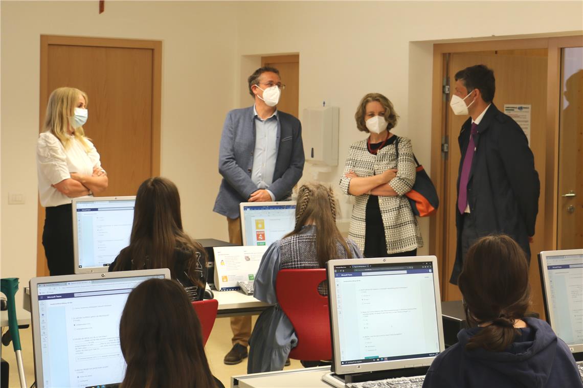 De düc trëi i zëntri scolastics él l'assessur y l'intendënta che á podü costaté i vari inant por ci che reverda l'adoranza di mesi digitai tratan l'insegnamënt. “Do che al é rové la banda leria tl zënter dles scores altes y cun i mesi digitai a desposiziun él sté poscibl da amplié les conescënzes digitales sides dles insegnantes, di insegnanc co ince dles scolares y di scolars”, á dit Alfreider. Tl Zënter scolastich de La Ila él l'assessur che á vijité les cuintes classes cun indöt 22 scolares y scolars che s'arjigna al Ejam de Stat. L'intendënta Ploner á sotligné che chësc ann de scora caraterisé dal coronavirus ti dará ince competënzes ajuntives ales scolares y ai scolars por le dagní. “Tröp é drio a se mudé y os sciöche scolares y scolars podarëis dé osc contribut”, á dit Ploner.