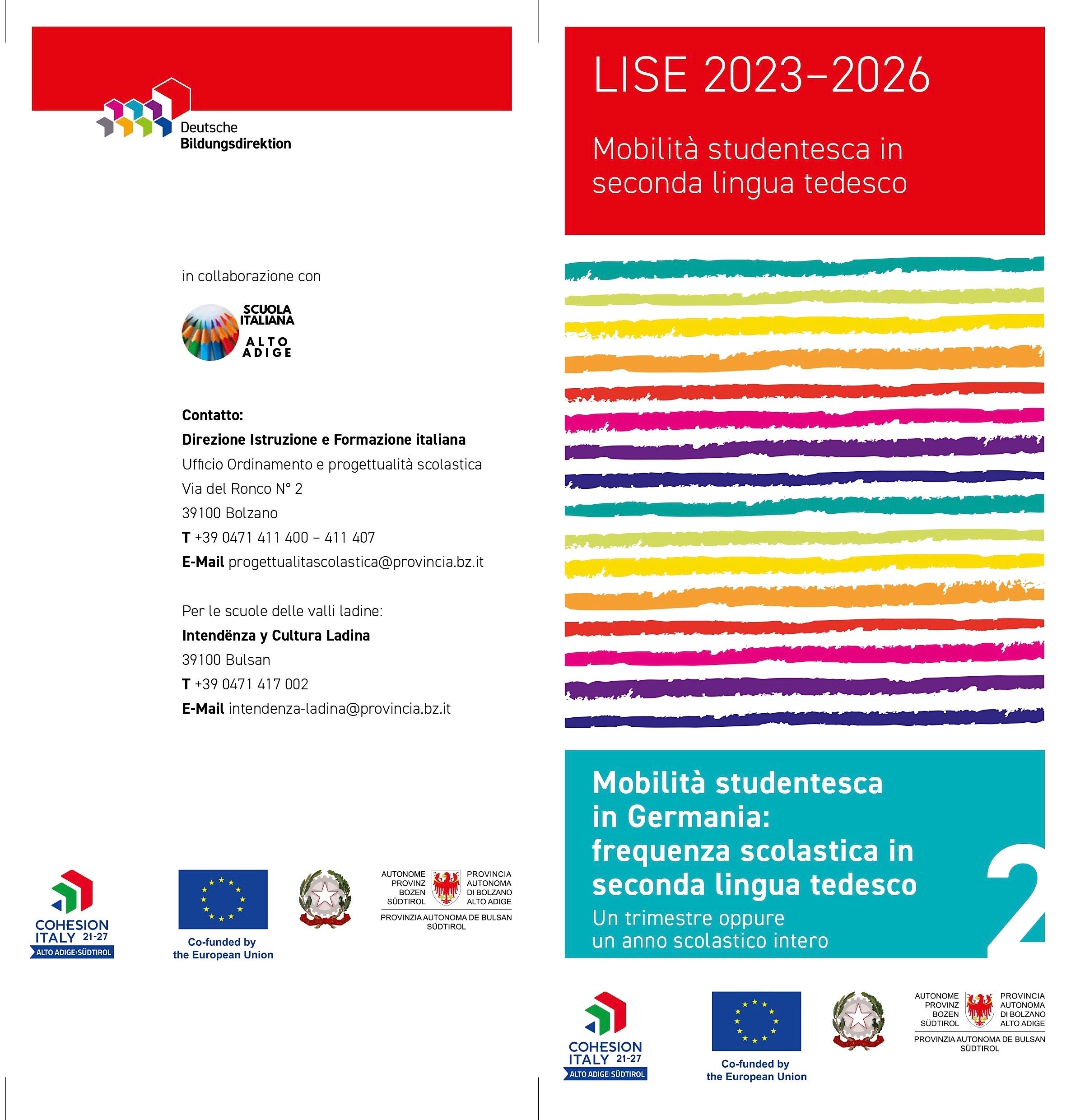 Cun le proiet "LISE Lingua Seconda – Zeitsprache LISE - Secundo Lingaz" metü a jí dala Deutsche Bildungsdirektion por la "Promoziun dl’acusiziun dl secundo lingaz talian y todësch" gnarál pié ia cun l’ann de scora 2024/2025 en colaboraziun cun l’Intendenza Scolastica taliana y cun l’Intendënza y Cultura ladina. En ocajiun de na conferënza stampa, gnarál incundé l’iniziativa, che pëia ia dal FSE Fonds Sozial Europeich, sciöche cofinanziadú de na soma totala de ca. 4 miliuns de euro.