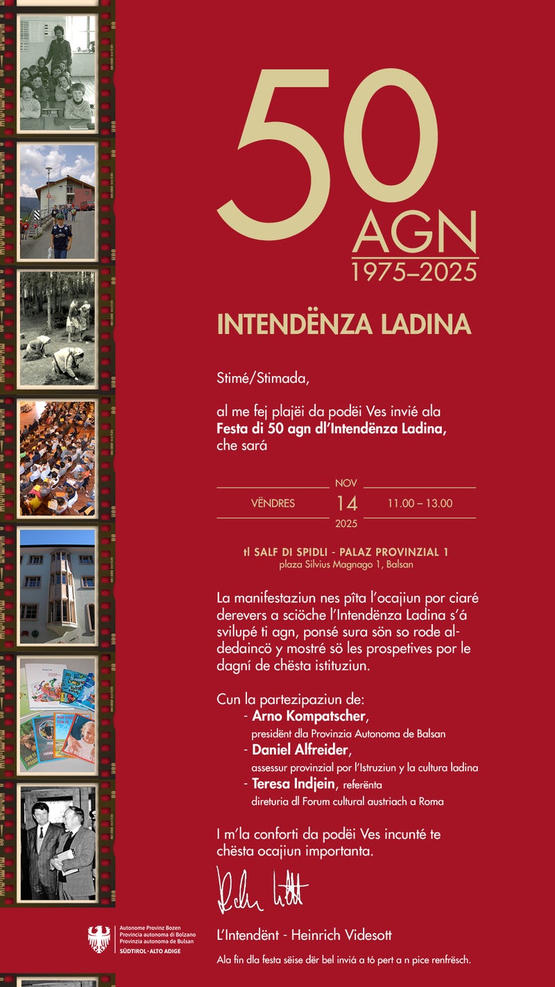 50 ani Intendënza Ladina: n’ëura de festa ai 14 de nuvëmber