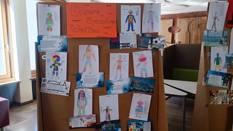 Te d’atres classes s’á l’iniziativa concretisé tres la realisaziun de n bingo y de n’ativité d’intercomprenjiun. Implü, á vigni scolar o scolara cherié süa silhouette linguistica y podü l’arichí cun parores, espresciuns y lingac che fej pert de süa storia personala; les silhouettes anonimes é spo gnüdes tacades fora ti porti sciöche rapresentaziun concreta dla richëza linguistica che é te scora.