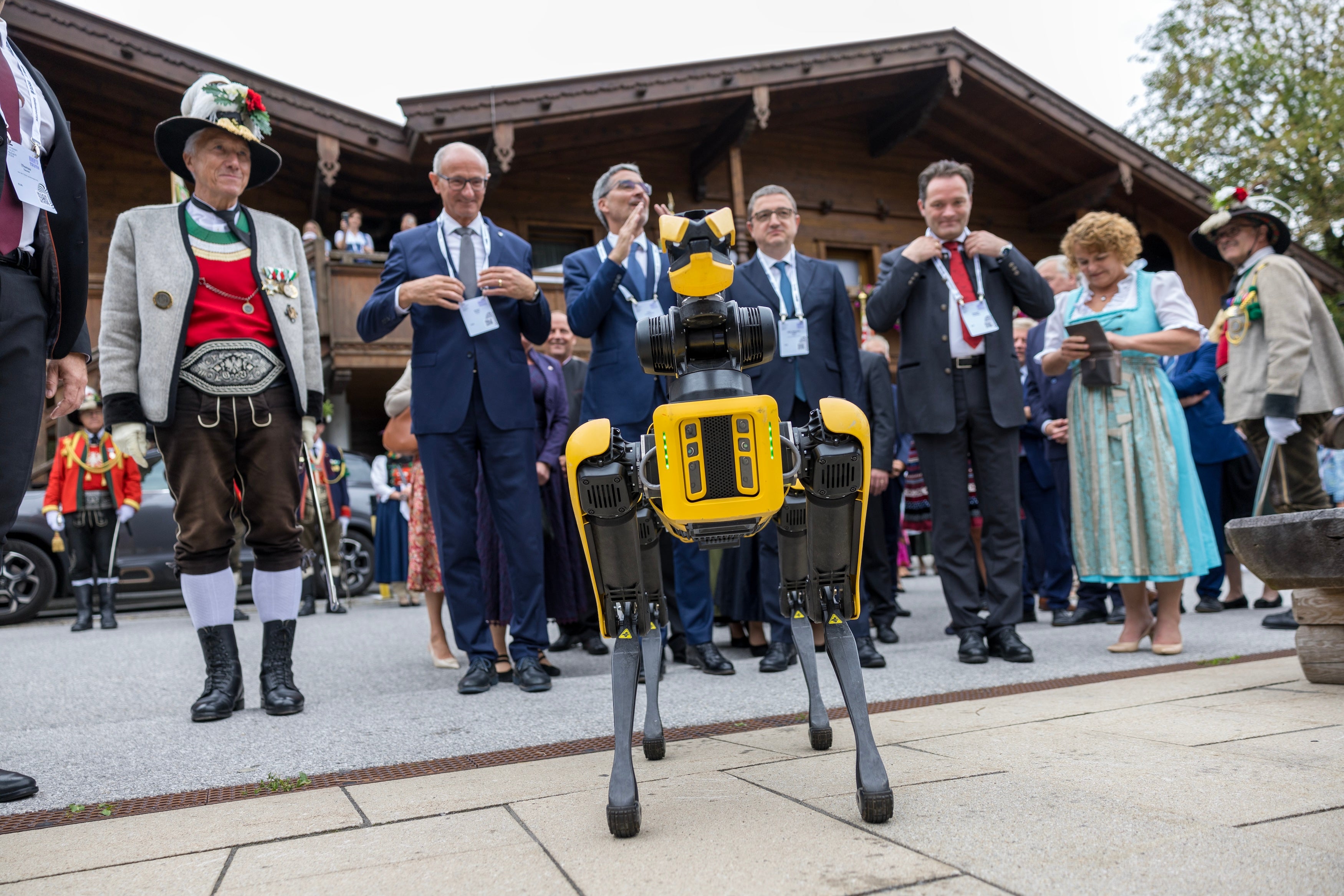 - Tradizion y inuvazion tl luech de chiche pënsa: l robot AI Spot ti sëurandà I badges ai ghesć. Da man ciancia: reprejentanc dla Cumpania di Scizeri de Alpbach, LH dl Tirol Anton Mattle, l presidënt dl’Euregio y LH Arno Kompatscher, LH Maurizio Fugatti, l minister naziunel Norbert Totschnig y la vizepresidënta dla Provinzia de Bulsan Rosmarie Pamer. (Foto: Land Tirol/Sedlak) » [IMG 2 MB]