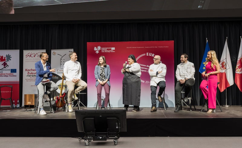 - “Euregio pra mëisa” uel purté l’ert culinera sot ai refletëures, mustré su si mpurtanza ti trëi raions dl’Euregio y renfurzé la cunlaurazion danter la lies di cueghes. (Foto: USP/Bernhard Aichner) » [IMG 1 MB]