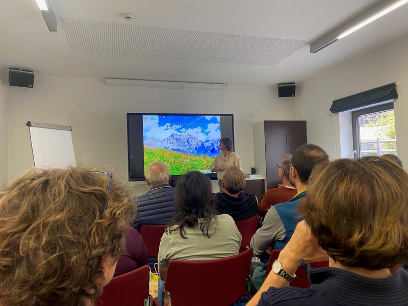 - "Oi, che este pa tö?" Ulrike Frenademez dl Istitut Ladin Micurà de Rü ti à pità ai partezipanc dla jita de furmazion na ntroduzion tla rujeneda ladina, te na maniera dalaibon y da fé damat. (Foto: USP/Ufize per la Furmazion Permanënta) » [IMG 2 MB]